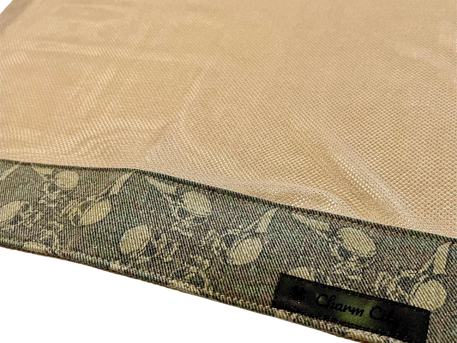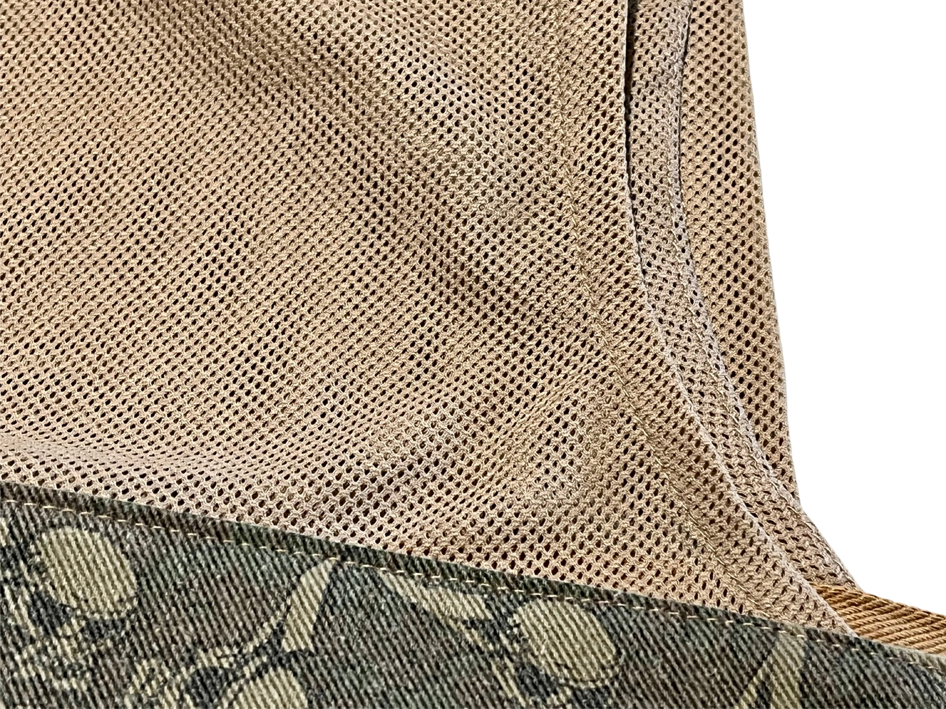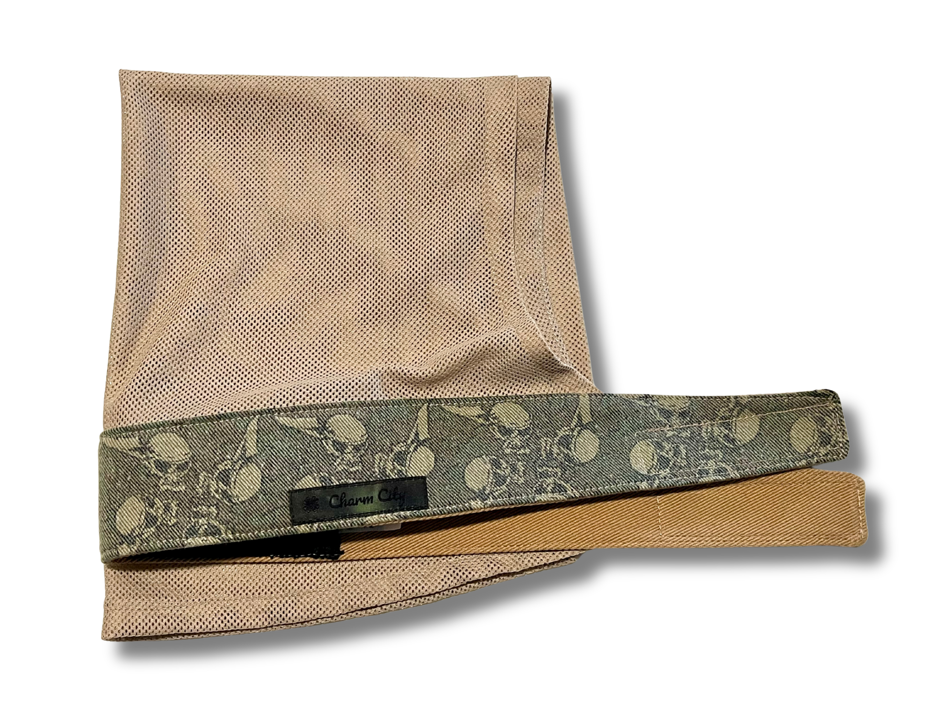 This vintage flying skulls fabric came from an old jersey. It has a nice even fade, but the design is still very clear. Fully finished tan denim back which is super soft. Featuring vintage style tan diamond mesh.